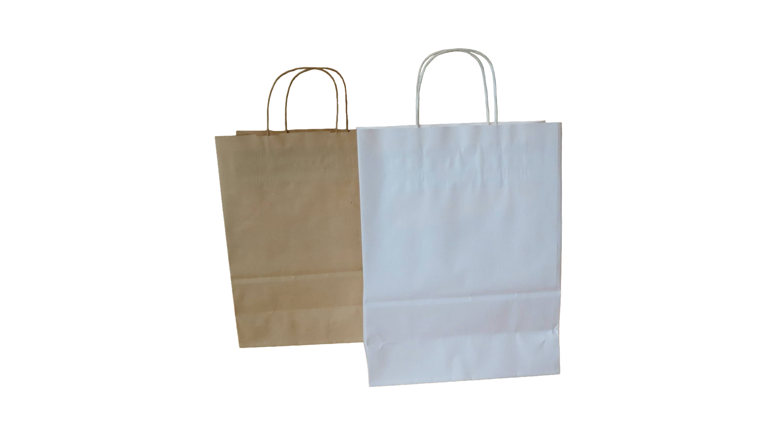 Twist handle paper carrier bags are eco-friendly, durable, and stylish packaging solutions commonly used in retail and hospitality industries. Our twist paper handle bags are made from ribbed kraft paper. Available in natural brown and white paper. both can be custom printed in house here in Lincolnshire. these bags feature sturdy twisted paper handles securely glued to the inside of the bag for added strength. They are available in various sizes and thicknesses. Our bags are made from 100gsm ribbed kraft paper. Which is ideal for a wide variety of products. Our bags are recyclable, biodegradable, and made from recycled materials when available. This makes them a sustainable eco friendly alternative to plastic bags.